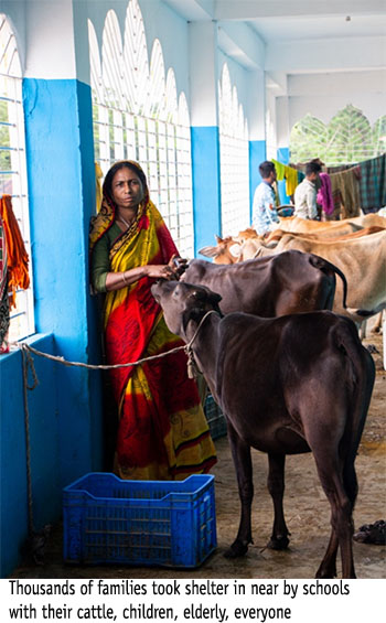 More than 400,000 people were temporarily displaced in flood shelters. People, farm animals, all were crammed up in the small school rooms. The situation is especially vulnerable for women and girls who had to wait for the sun to go down to be able complete their bathroom needs, that too, outside the shelter centers. There was a serious crisis of dry fuelwood and dry places for cooking.