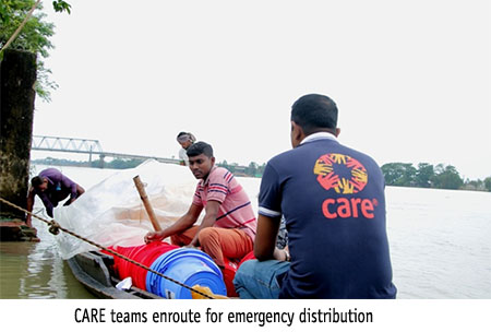 With the support from CARE USA and USAID CARE Bangladesh started responding to the crisis with the live savings humanitarian assistance including foods, multi-purpose cash grant, water-sanitation-hygiene promotion and protection services to targeting 15,000 individuals in Sylhet and Sunamganj district. Considering the level of impact, destruction and damage caused by floods CARE, estimating a need for short and long term response, recovery and reconstruction effort in the area of food security & livelihood, WASH, maintenance and restored community infrastructure and houses and integrated protection program addressing risk of gender-based violence (GBV) and sexual reproductive health for women and adolescent girls. CARE estimates USD 6 million will be required to implement the proposed program during July to December 2022.