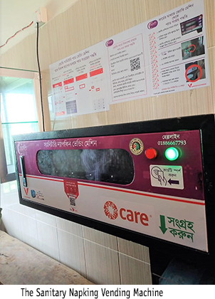 CARE Bangladesh has installed seven sanitary napkin vending machines at six schools in the Gazipur city corporation and one urban primary health center under the Urban Health projects. CARE Bangladesh also trained ten focal teachers from 10 schools who are conducting health education sessions at schools on adolescent health, personal hygiene, nutrition, and COVID-19.
