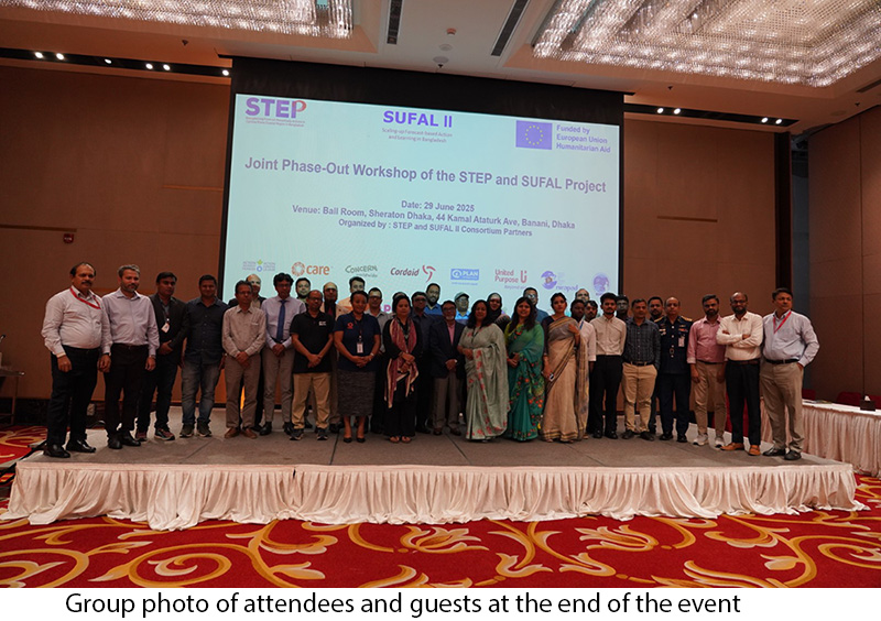 The joint phase-out workshop for the projects Scaling-Up Forecast-Based Action and Learning in Bangladesh (SUFAL II) and Strengthening Forecast-Based Early Action in Cyclone-Prone Coastal Regions in Bangladesh (STEP), funded by the European Union Civil Protection and Humanitarian Aid Operations (ECHO), was held at the Sheraton Hotel, Dhaka, on 29 June 2025.